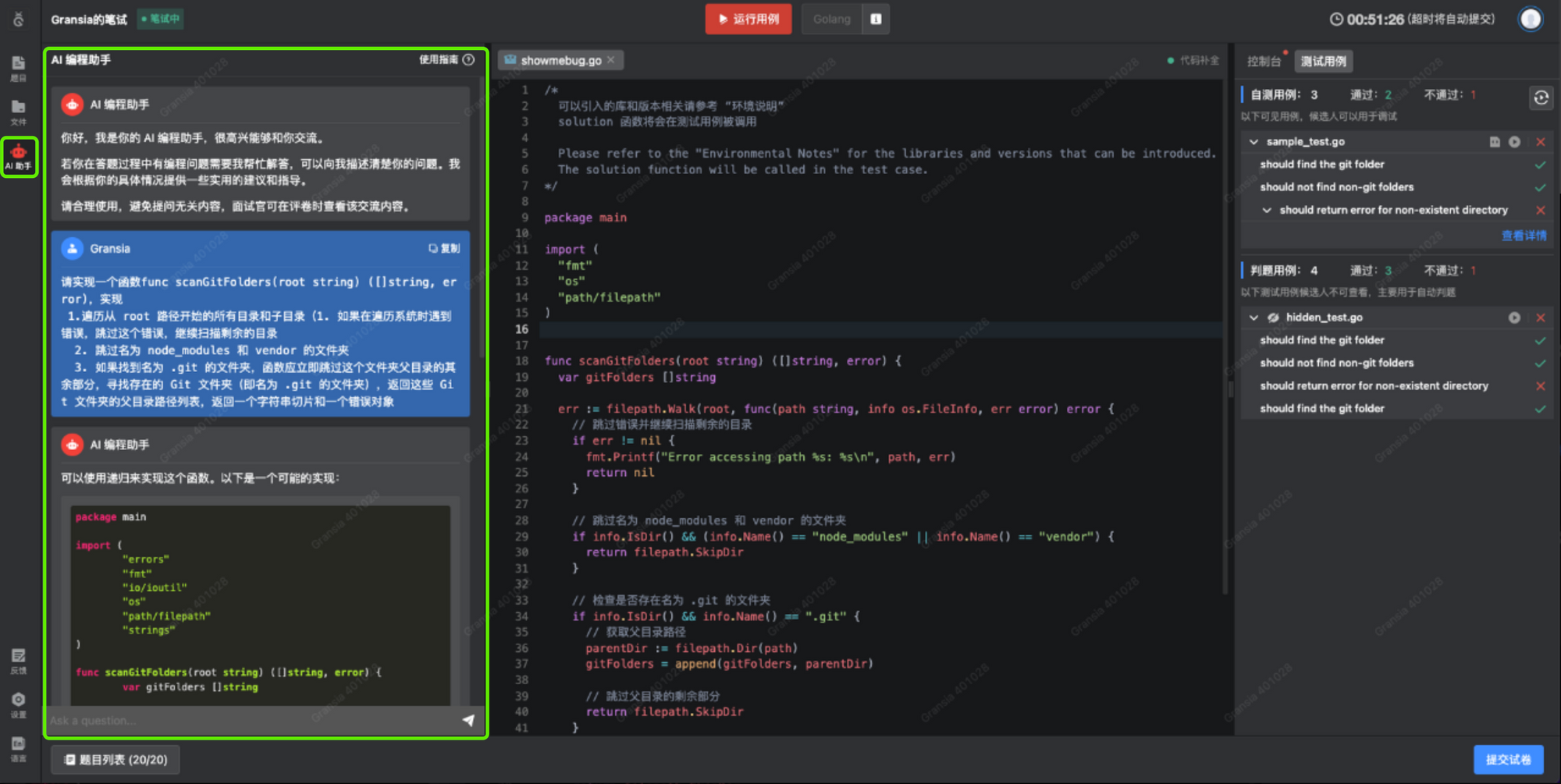 在答题过程中,你可以将 AI 助手视为你的“结对编程伙伴(Co-pilot)”,它擅长: